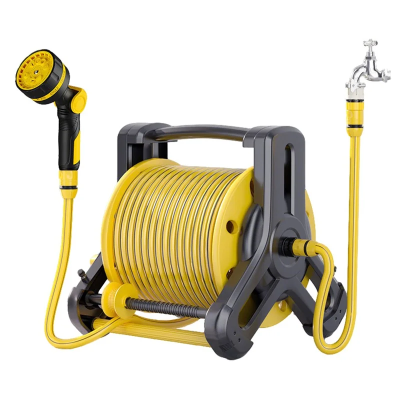 Make garden maintenance effortless with this 25-meter retractable hose reel featuring a space-saving wall-mounted design. Built with radial braiding for high durability and a tilted connection to prevent tangles, it ensures a consistent water flow for lawn irrigation or car washing. The ergonomic foldable handle and stable triangular structure provide easy portability and safe, compact storage for any modern outdoor space.