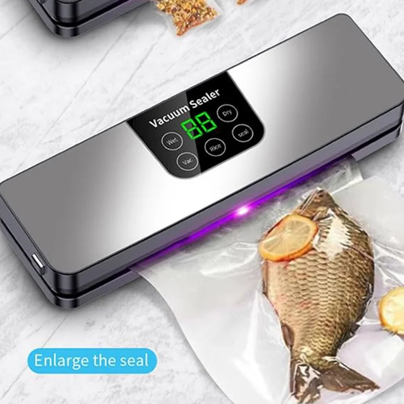 Keep food fresh up to 8 times longer with this powerful 65kPa suction machine that handles dry, moist, and oily items. The one-touch operation and wide heating band ensure a professional, airtight seal every time. This kitchen essential promotes democratie in food preservation, helping every family reduce waste and save money with high-end storage technology.